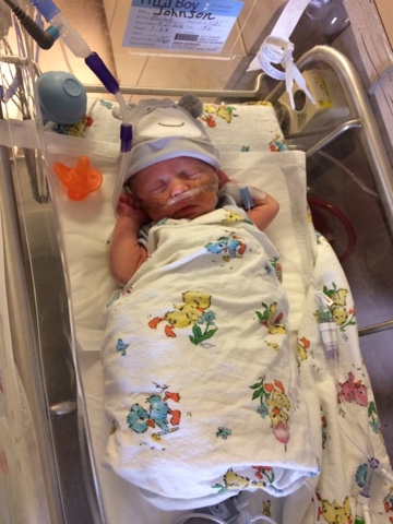 Levi was transferred down to the NICU after he was born and place on a CPAP machine to help him breathe.
